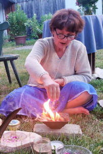 escribió: "En julio visité el vivero orgánico, donde Reiner y yo solíamos ir para el Agnihotra de Luna Llena y Luna Nueva. Cada año, el 23 de julio, el vivero 'Painer Garden', en Estiria, celebra el "Festival de Gratitud para la Madre Tierra" con un lindo programa hasta su culminación con el Agnihotra de la tarde. Fue muy hermoso estar allí, enseñar el Agnihotra a gente nueva y ver a algunos de los antiguos Agnihotris. Con mucho cariño. Om Shree" |