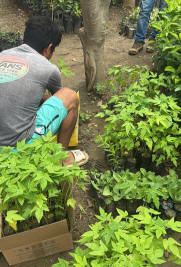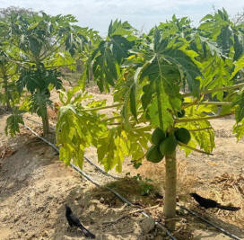 y es más esas áreas aún no producen. Tengo 100 plantas de papaya. El día de sembrar las papayas, la ceniza Agnihotra solo alcanzó para 60 plantas que ya tienen fruto, las 40 plantas restantes aún están en proceso de crecimiento y ni siquiera tienen flores. |