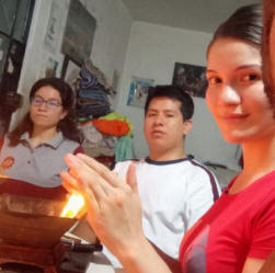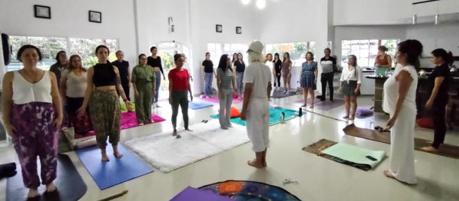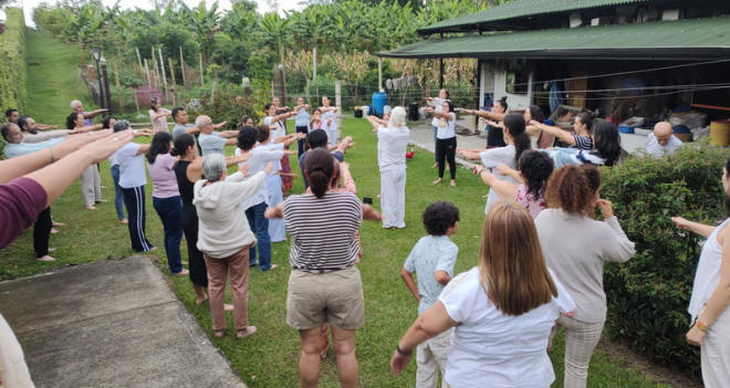 | La tercera y última parte de nuestro viaje de Gracia por Colombia, nos llevó en el eje cafetero, enseñando Agnihotra y presentando algunos de los tantos maravillosos efectos de la práctica de los fuegos sanadores de la Terapia Homa. Estas bendecidas sesiones estaban acompañadas de Ejercicios Terapéuticos de Yoga, que es sinónimo a salud, flexibilidad, alegría, movimiento, ... Fotos de esta y de la próxima página son de un encuentro en la Granja Homa La Herencia de la familia Dora Betancur. | ||