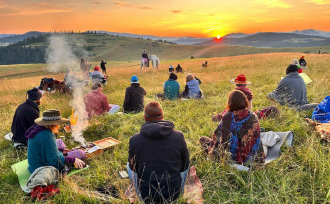 Y permítanse ser movidos por la Gracia. Movidos por la Gracia. Y muévanse en la Luz y en línea con su alma. El truco está en cómo permanecer con los pies en la tierra o, en polaco, «Nogi na ziemi». Cómo mantener los pies en la tierra. De lo contrario, estarían volando incapaces de navegar por el mundo material que realmente necesitan mantener. ¿Cómo mantener los pies en la tierra, ser capaz de trabajar, conversar con la gente y también permitir que esa conciencia espiritual evolucione? Se trata de algo holístico. Ustedes son seres holísticos. Con demasiada frecuencia, cuando los jóvenes se involucran en el camino espiritual, antes de haber tenido ninguna experiencia de vida ni nada por el estilo, son como pájaros volando, con los pies sin tocar el suelo. Eso ocurre, por ejemplo, en Hari Krishna, sin ánimo de ofender a Hari Krishna, pero a veces se vuelven así, porque no tienen la experiencia de vida necesaria para mantener los pies en la tierra. Y hay algo muy sagrado en la tierra. La tierra debe ser respetada y honrada, el suelo, el terreno, la tierra. En los viejos tiempos, la gente solía contarnos todo tipo de cosas espirituales. «Tuve esta visión», y nosotros preguntábamos: “¿Tienes un jardín?” y les decíamos: “deberías empezar a cultivar un jardín.” Y se enfadaban mucho porque este maestro espiritual les decía que plantaran verduras, flores y hierbas cuando le estaban contando la visión cósmica que habían tenido. Esto era porque primero necesitaban estar aterrizados. Casi todos los que están en esta sala han sido enraizados y esta tierra es suelo sagrado, esta tierra. También es una tierra muy antigua. Y todos son guardianes de esta gran tierra. Y el fuego ha regresado aquí después de muchos años. Ahora todos ustedes experimentarán estos velos entre mundos. No tengan miedo de eso; es natural. Sabiduría. La sabiduría no es solo el conocimiento que se obtiene mediante el aprendizaje, el estudio, la lectura y la lectura de las palabras de grandes santos sabios y seres divinos. Cuando comienzan a comprender estos velos entre los mundos, verán que pueden recibir sabiduría a través de una planta, ¡una gran sabiduría! O a través de una piedra; todas estas maravillosas piedras contienen una gran sabiduría. Y hay muchos seres grandiosos a su alrededor, no solo aquellos que ven con brazos, piernas y cabeza, sino que también hay muchos seres divinos presentes aquí. Aprendan a escuchar, aprendan a caminar con determinación y conciencia. Aprendan a hacer las cosas con atención plena. Si tienen que recordar cosas como “estoy dejando las llaves aquí, he dejado el teléfono en este soporte”, a veces tienen que hacerlo para ser más conscientes. En Nuestro trabajo, todo el mundo corre de un lado a otro y se olvida de cosas... Muchas veces se llaman unos a otros: “¿Puedes llamarme al teléfono?”, “¡lo siento, yo tampoco encuentro mi teléfono!” ¡Alguien tiene que estar atento! ¡O no habrá nadie a quien llamar! Cuando realicen el Agnihotra, estén presentes con el fuego, no al teléfono ni pensando en otra cosa. Si pueden permanecer sentados más tiempo junto al fuego, estupendo. Si solo son cinco minutos, no pasa nada. Es mejor no marcharse mientras el fuego siga ardiendo. Estos son tiempos poco comunes. Hay tanta negatividad en el mundo, incluso los patrones climáticos lo reflejan. Por eso, aquellos de ustedes que tienen ese anhelo y esa capacidad, concéntrense en la Luz, concéntrense en Amar al Prójimo como a Sí Mismos. Con todas las personas. En tiempos tan oscuros, deben desarrollar su Luz y permitir que brille. Y aquellos que están perdidos, los encontrarán y recibirán claridad en Nuestra presencia. Y el camino espiritual no tiene por qué ser serio; hay que ser sincero, pero recuerden cultivar la alegría, como si fuera un cultivo en el jardín. Produzcan y cultiven la alegría. La alegría es de la Luz. Mucho amor y bendiciones para todos. OM TAT SAT. (*Estos mensajes son de nuestro amado Shree Vasant, recibidos por Parvati durante meditaciones grupales en la Ecoaldea Bhrugu Aranya en Polonia.) |